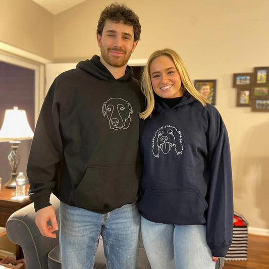 Gerade kamen die 3 Hoodies. Die Pullifarben wie abgebildet, die Stickerei mega. Wir können unseren Hund sofort erkennen. Der Service schnell und absolut TOP
