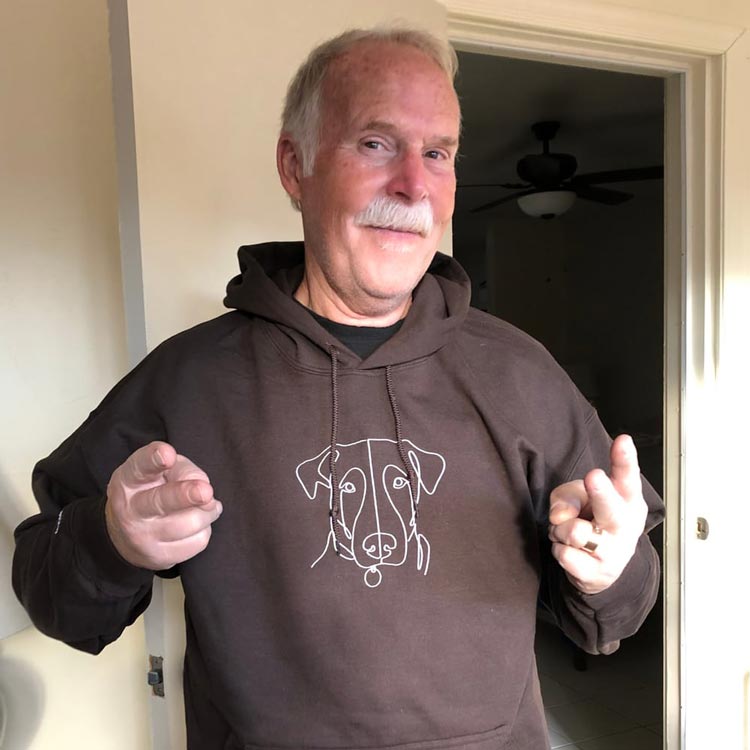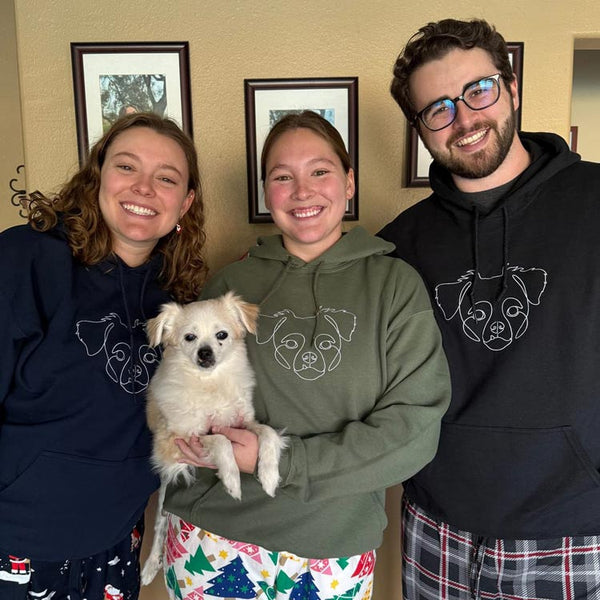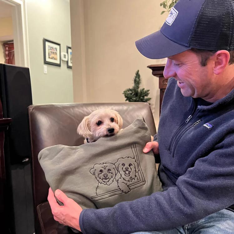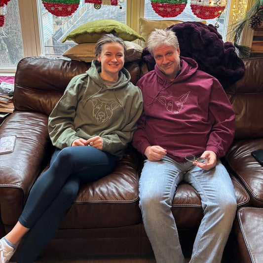 Gerade kamen die 3 Hoodies. Die Pullifarben wie abgebildet, die Stickerei mega. Wir können unseren Hund sofort erkennen. Der Service schnell und absolut TOP